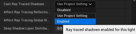 - Details panel β Cast Ray Traced Shadows: Enabled
