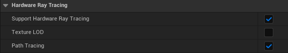 Edit β Project Settings β Engine β Rendering β Hardware Ray Tracingβ Support Hardware Ray Tracing