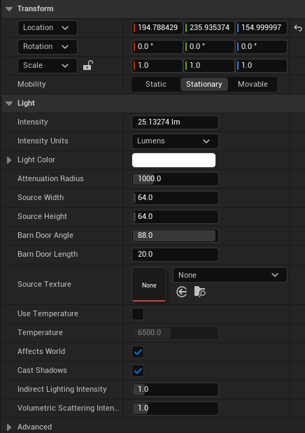 | Volumetric Scattering Intensity | How visible this light is in fog/volumetrics |