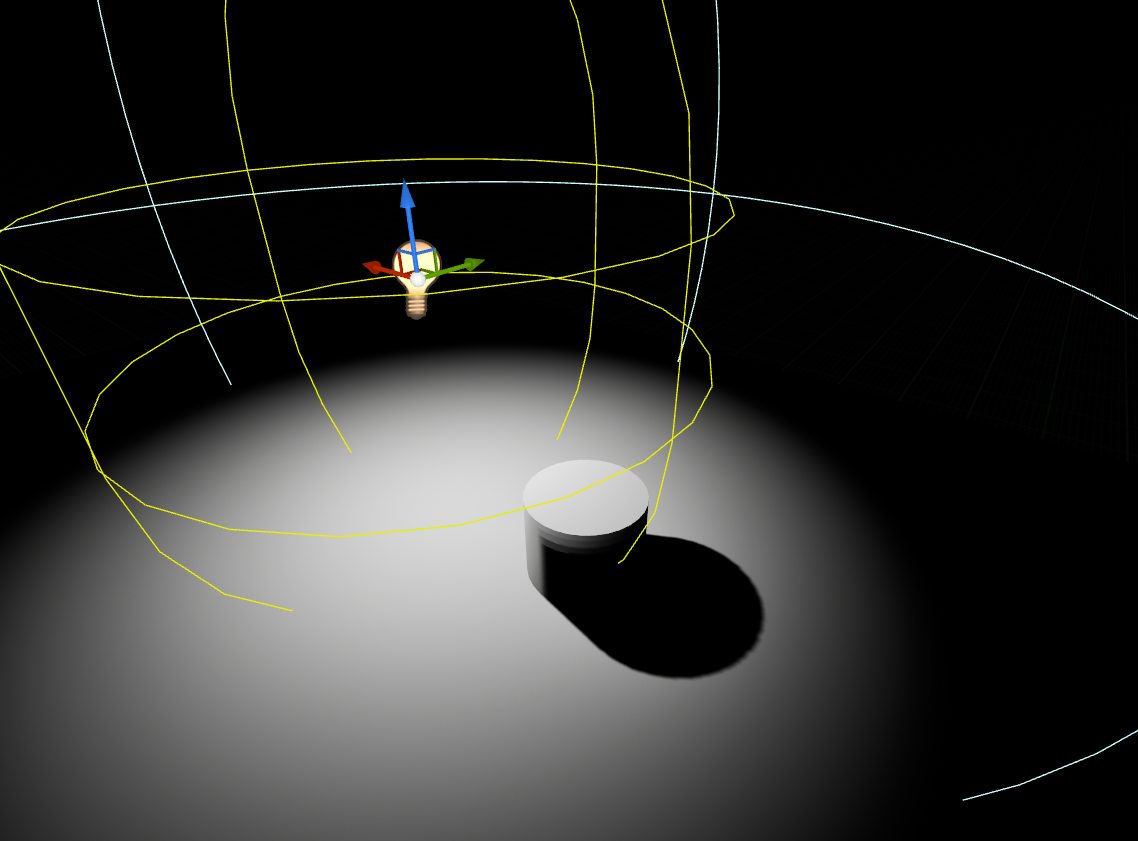 | Spot | Attenuation Radius β Distance in cm, plus Inner/Outer Cone Angle for cone shape and falloff |